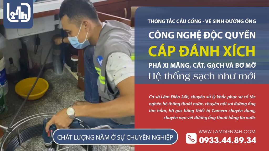 Thông tắc ống thoát nhà bếp bị nghẹt, hộ dân Vũng Tàu. Lâm Điền sử dụng Cáp đánh xích để xử lý sự cố.